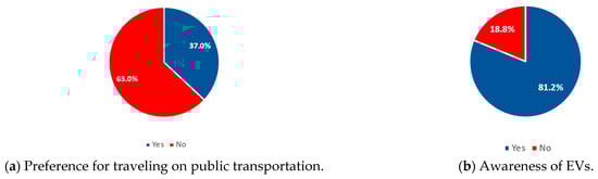 This section explores and interprets insights from this study to determine community opinions about EVs in Hail City. The intention is to facilitate a smooth transition from raw data to actionable insights, thereby presenting a clear and straightforward path toward the deployment of a robust solar CS network. The results of the questionnaire were analyzed concerning the current situation of the transportation sector, the extent of society’s acceptance of EVs, and the need for infrastructure to charge this type of vehicle that is expected to be widely adopted soon.