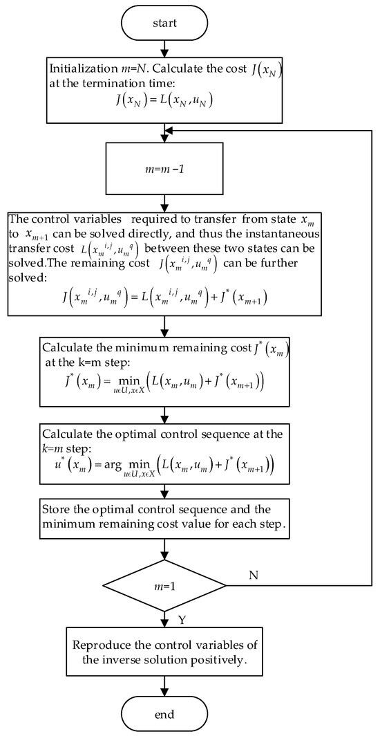 where and are the state variables at steps k and (k + 1) respectively, is the control variable at step k, and is the system state transition equation function, which is expressed as follows: