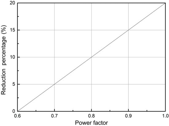Relationship between the percentage reduced of volume of permanent magnet and power factor.