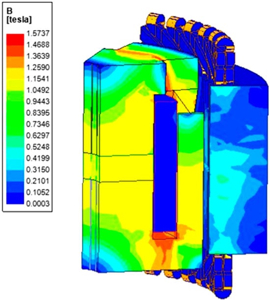 In Formula (7), H is the magnetic field intensity, L is the length of each magnetic circuit, I is the current in the electromagnetic winding and N is the number of turns of the electrical excitation winding. Formula (8), which is used for calculating the number of turns of the excitation winding, can be obtained by combining Formulas (6) and (7):