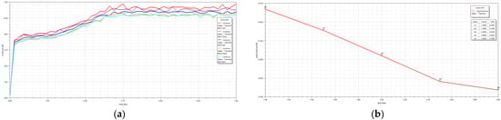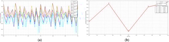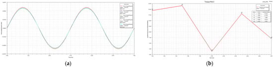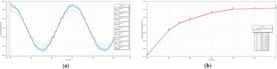 The real-time waveform of the cogging torque at different slot widths is shown in Figure 11a, and the relationship between the peak cogging torque and the slot width is shown in Figure 11b. The flux linkage real-time waveform of phase A is shown in Figure 12a, and the relationship between the average flux linkage of phase A and the slot width is shown in Figure 12b. The iron loss real-time waveform at different slot widths is shown in Figure 13a, and the relationship between the slot width and the average iron loss is shown in Figure 13b. The specific values are shown in Table 5.