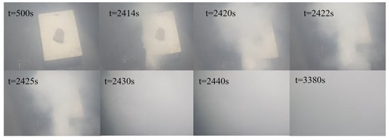 During the TR process of lithium-ion batteries, exothermic reactions generate significant heat, resulting in the production of a substantial amount of smoke within the battery. When the internal gas pressure of the battery reaches a specific threshold, the safety valve ruptures, leading to the release of a considerable quantity of white smoke and some electrolytes through the valve outlet. As TR continues, the amount of smoke generated gradually intensifies, ultimately filling the entire room. Consequently, visibility inside the room deteriorates close to zero. Figure 4 illustrates the TR process of lithium-ion batteries under a heating power of 300 W.