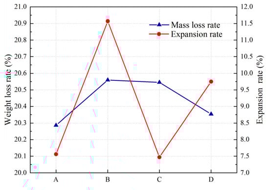 Figure 6. Battery mass loss ratio and expansion rate. A: Heating power 300 W; B: heating power 500 W; C: heating power 700 W; D: heating power 900 W.