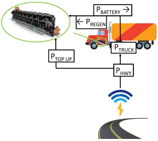Electrified highways (e-Hwys) are a technology potentially suitable for the decarbonization of road transportation [,,,]. e-Hwys work by having installed infrastructure which supplies electricity directly from the electric grid to vehicles as they travel along the road, traditionally with catenary systems, or more recently, via dynamic wireless power transfer (DWPT) [,]. e-Hwys thus shift the focus to dynamic power rather than the more conventional electric vehicle (EV) situation which relies on the storage capacity of a battery.
