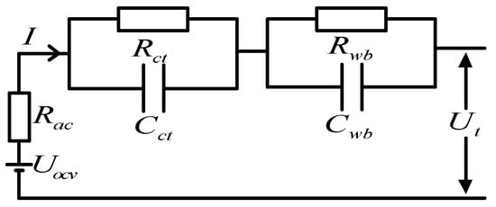 Rac is the Ohmic resistance, Rct is the charge transfer resistance which represents the electrochemical polarization effect, and Rwb is the diffusion resistance which represents the concentration polarization effect. Cct and Cwb represent the charge transfer capacitance and diffusion capacitance, respectively. Uocv and Ut represent the open circuit voltage and the output voltage, respectively.