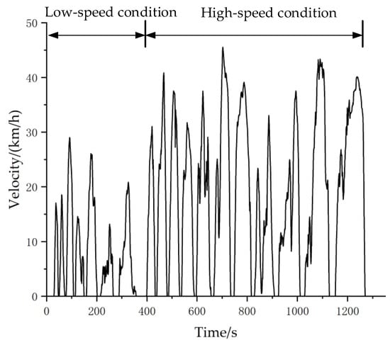 Figure 2b, the high-efficiency zone of motor 2 is concentrated in the middle and low-speed region of 900~2500 r/min and the corresponding velocity is 17~49 km/h [