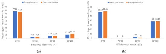 (a) Comparison of percentage of working efficiency of the motor 1; (b) Comparison of percentage of working efficiency of the motor 2.