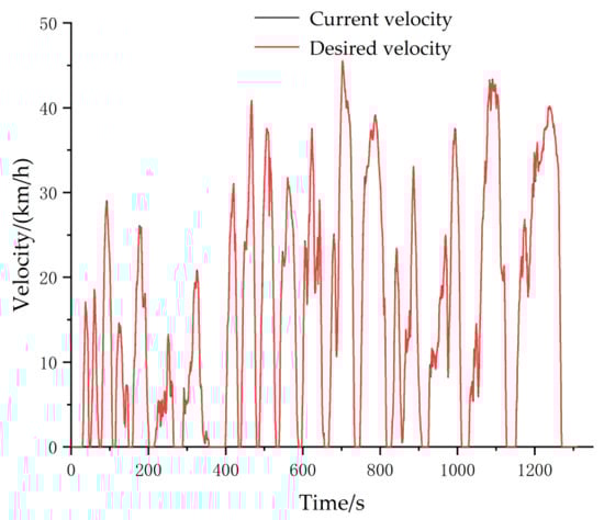 In the table, V denotes the speed of the vehicle, is the demand torque of the vehicle depending on the opening of the accelerator pedal, is the maximum torque at the current speed of motor 1, is the maximum torque at the current speed of motor 2, is the actual torque provided by motor 1, is the actual torque provided by motor 2, is the rated torque of motor 1, is the rated torque of motor 2, and and are the gear ratio of the transmission on the first and second gear, respectively. is a characteristic parameter of the planetary row.