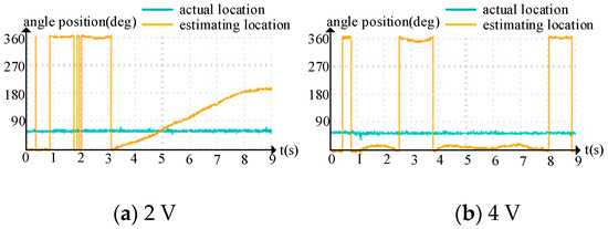 Simulation waveform of initial position estimation. (a) The simulation result with the initial position set at 60°. (b) The simulation result with the initial position set at 120°.