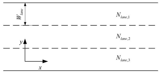 Unlike robots that move arbitrarily in space, vehicles must ensure they travel along the center line of the road they are on as much as possible when traveling on structured roads. When the front meets a moving vehicle, the ego vehicle can change lanes to overtake or follow the vehicle. Based on the restrictions of traffic regulations, it can only change lanes at the dashed lane line, and lane changing is prohibited at the solid line or double yellow line. The total repulsive potential field of the structured road proposed in this paper is obtained by superimposing multiple repulsive potential fields. It is divided into the following two main categories: the dashed lane line potential field, and the potential field of the solid lane line and the road boundary. Figure 1 is a schematic graph of the structured road, where the width of a single lane (i = 1, 2, 3…) denotes the road number.