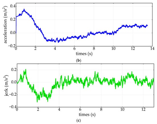 Intelligent microvehicle status information: (a) The state of speed. (b) The state of acceleration. (c) The state of the first-order derivative of the acceleration–jerk.