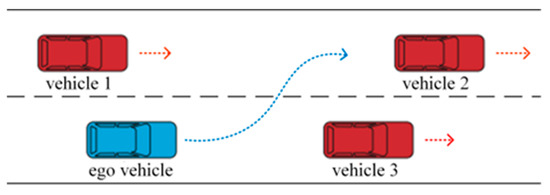 Among the many functions of intelligent driving assistance systems, autonomous lane changing is important [1]. Through intelligent lane-changing decisions, traffic accidents caused by driver errors can be significantly reduced, and the efficiency of lane changing can be improved. Consequently, systems related to autonomous vehicle lane-changing [2,3] have emerged as a focal point of research for various vehicle enterprises and the robotics field [4].