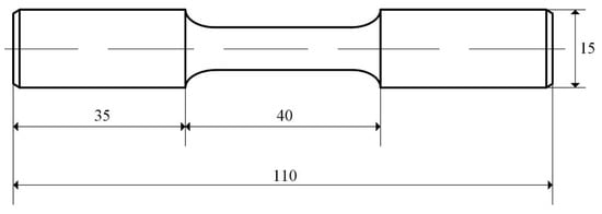 Reducing the overall mass of the car is beneficial for improving energy consumption and environmental pollution. The body accounts for about 30% to 40% of the weight of the whole vehicle, and reducing the body mass can make the car more lightweight. The 7075 aluminum alloy has some characteristics that allow it to perform better than steel in the collision process, such as a low density, high specific strength and specific stiffness, and a large energy absorption capacity. In Table 3, we present a comparison of static performance parameters between the 7075 aluminum alloy and steel. It is helpful to increase the lightweight effect by using a 7075 aluminum alloy in the car body. The model is validated by the experimental data for 7075 aluminum alloy under different strain ratios [42]. The performance parameters of the aluminum alloy are given in Table 4, such as the elastic modulus E, yield strength , tensile strength , breaking strength K, elongation δ, and section shrinkage φ. The values of the parameters are shown in Table 5, such as the fatigue strength exponent b, fatigue ductility exponent c, mean stress coefficient A, and mean strain coefficient B. The geometry and dimensions of aluminum alloy specimens are shown in Figure 1.
