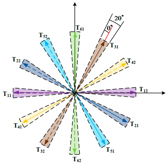 Due to the spatial symmetry of the windings in a dual three-phase permanent magnet synchronous motor, the dual dq-axis predictive current model under the other phase’s OPF constraints can be obtained by adjusting the angles according to Equations (12) and (14). In summary, the fault current model can be represented by the formulas (15) and (16)