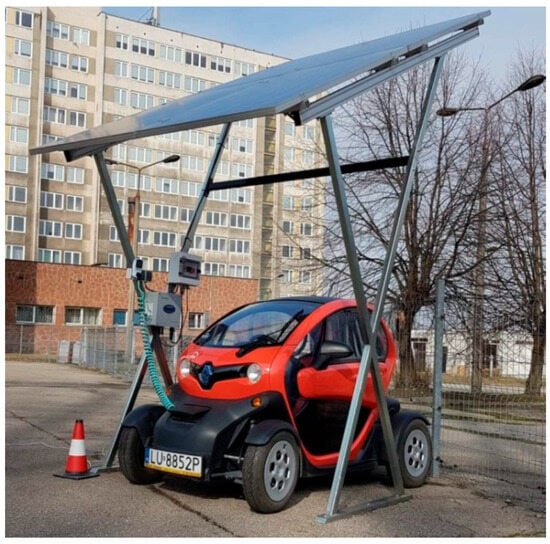 - Sokolovskij, E.; Małek, A.; Caban, J.; Dudziak, A.; Matijošius, J.; Marciniak, A. Selection of a Photovoltaic Carport Power for an Electric Vehicle. Energies 2023, 16, 3126. [Google Scholar] [CrossRef]