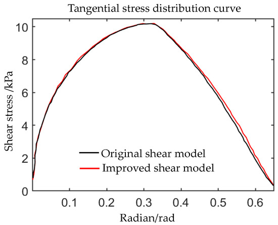 Therefore, a function that satisfies the above characteristics can be used to replace the more complex shear characteristic model formula. Based on this principle, the original shear model Equation (11) can be simplified to Equation (12). Figure 2 shows a comparison of the distribution curves between the improved shear model and the original shear model. From the graph, it can be seen that the trajectories of the two curves are basically the same, with almost no difference.