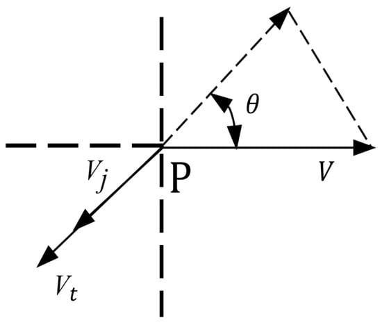 As shown in Figure 3, for any point P on the wheel soil interface, its velocity can be divided into horizontal moving velocity V and tangential velocity . Therefore, the slip velocity of the wheel Vj can be obtained from velocity vector analysis: