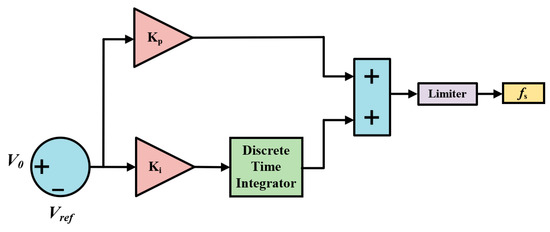 The switching frequency fs is determined by comparing the output voltage V0 to the reference input voltage Vref, relying on the provided error voltage. The voltage control oscillator (VCO) can be utilized to compare the input and output voltage values [22,23,24], while also driving the gate signals. Figure 5 displays the control circuit. The controller regulates the output voltage V0 and modulates the current, referred to as the CV mode of operation. The third-order transfer function, specified in Equation (17) with sub-equations in Equations (18)–(22), is valuable for constructing the outer feedback compensator [31,32,33].