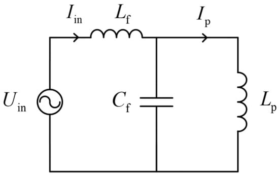 The resonant compensation topology at the transmitter end, as shown in Figure 2, can be equivalently represented by the circuit model illustrated in Figure 1. , , … , is each segment of the power supply rail, while , , … , and , , … , can be combined and represented as a total inductance Lp for ease of analysis and calculation. Accordingly, the transmitter end of the LCC-S topology is depicted in Figure 3, in which represents the inverter output voltage, represents the inverter output current, and represents the power supply rail current.