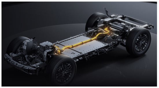 With the rapid advancement of energy storage units and motor power density, significant improvements have been made in the development of electric vehicles. This has brought to light the environmental and energy-related disadvantages of fuel vehicles [1,2]. As drive-by-wire technology continues to mature, there is a growing focus on distributed drive and four-wheel steering technology [3]. Steering-by-wire and distributed drive technology eliminate the need for mechanical transmission modes, thus removing various restrictions imposed by mechanical connections on steering and drive systems. The distributed drive utilizes torque differences among the four wheels to generate additional yaw torque, thereby enhancing vehicle stability. Four-wheel steering vehicles can control the rotation angle of front and rear wheels without changing the longitudinal force of front and rear wheels, and they can control the yaw moment by changing the direction angle of force [4,5]. Effectively leveraging tire longitudinal force and maximizing the benefits of four-wheel steering and distributed drive to further enhance vehicle handling stability has become a challenging focal point within the realm of vehicle chassis control [6]. In 2020, the Teemo four-wheel steering intelligent chassis debuted SAECCE, and in 2022, BYD released the distributed drive car Yang Wang U8 (Figure 1 and Figure 2).