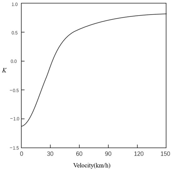 the curves of the relationship between the front and rear wheel angle ratio and vehicle speed can be obtained from the above equation, as seen in Figure 6.
