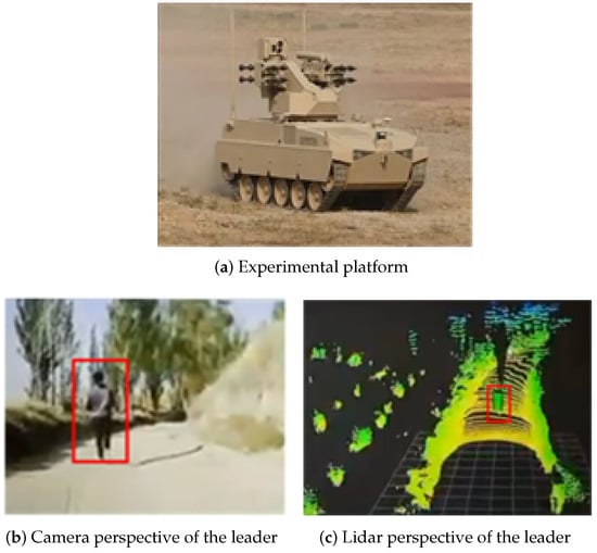 Due to their low operational requirements and strong off-road mobility, unmanned tracked vehicles with leader-following capabilities are valuable in missions, such as reconnaissance, logistics, and disaster relief [1,2,3,4]. However, the leader-following task poses considerable control challenges, making it difficult to enhance the vehicle’s performance. On the one hand, the distance between the unmanned vehicle and the leader should be maintained at a reasonable value [5,6,7,8]. Excessive distance increases the risk of losing track, while too little distance may lead to collisions when the leader stops abruptly. The orientation of the unmanned vehicle also needs to be stably controlled to meet the requirements of the leader perception system [9,10,11,12]. On the other hand, the dynamic characteristics of tracked vehicles are complex, with significant coupling between longitudinal and lateral control, and the dramatic changes in load resistance in off-road environments increase the difficulty of vehicle motion control [13,14,15,16,17,18]. Therefore, leader-following control for unmanned tracked vehicles poses a considerable challenge.