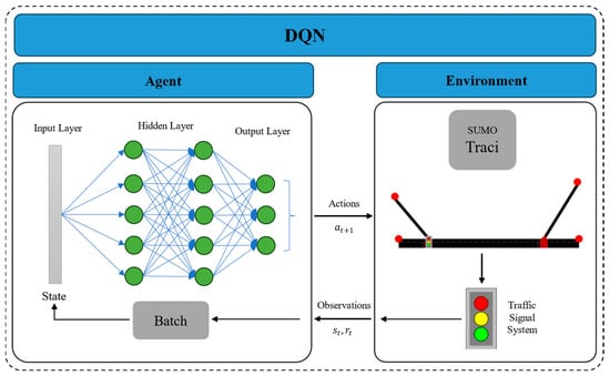 DQN-based signal control architecture.