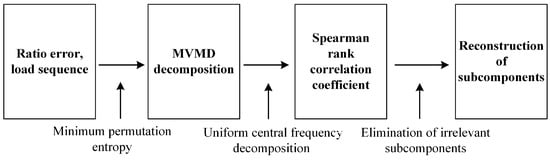 - Adaptive MVMD Decomposition: Set the minimum permutation entropy as the objective function, use the RIME optimization algorithm to solve for the optimal decomposition parameters of MVMD, and decompose the collected load and ratio error sequences.