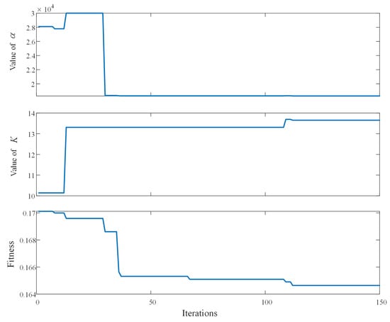 The evolution of the optimal solution over iterations, reflecting the optimization process of parameters K and , and corresponding changes in the objective function.