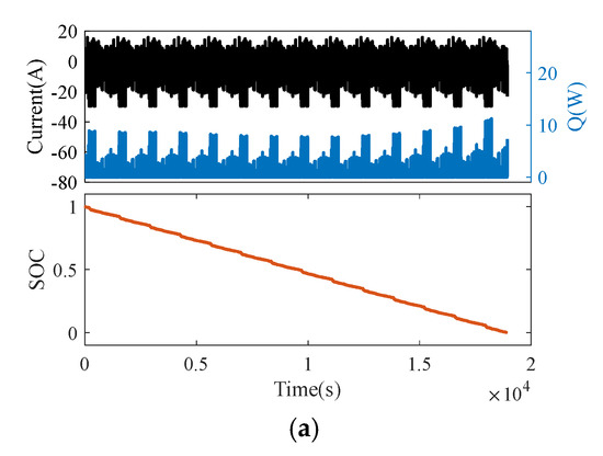 The reversible heat in the battery is calculated from the difference between the open circuit voltage and the terminal voltage, as well as the current. The purpose of the open circuit voltage identification experiment is to provide a data basis for the calculation of reversible heat in the battery heat generation model. The open circuit voltage of a battery is a function of temperature and SOC, and it is identified through a mixed power pulse test. The specific experimental steps are as follows: