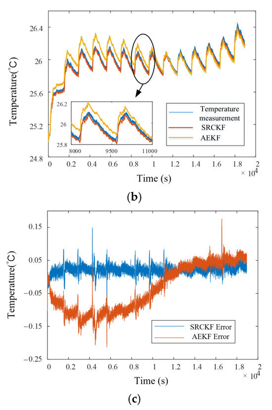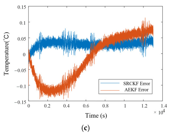 - The SRCKF is proposed for internal temperature estimation, and its accuracy is verified through two dynamic operating conditions: FUDS and US06. Compared with the AEKF, the SRCKF has a similar computational efficiency, with an accuracy improvement of over 50%. In addition, the robustness of the estimation method is verified by changing the initial internal temperature value.