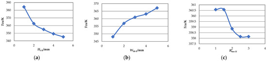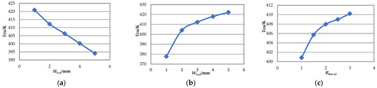 The diagram for each factor influencing the temperature of winding: (a) fin height; (b) fin width; (c) the ratio of slot width to fin width.
