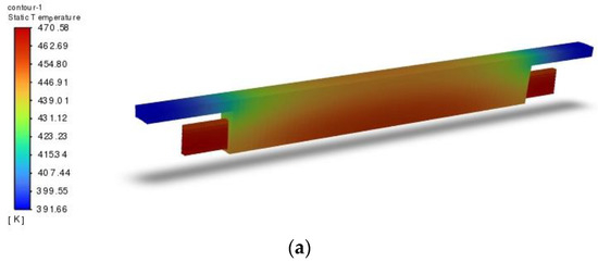 According to Equation (9), Q, Tair, and A are known quantities. Twall,ave can be obtained through simulation calculations, and the convection heat transfer coefficient on the surface of the motor casing can be calculated. The same method can be applied to calculate the convective heat transfer coefficient of the casing surfaces for models 2 and 3.
