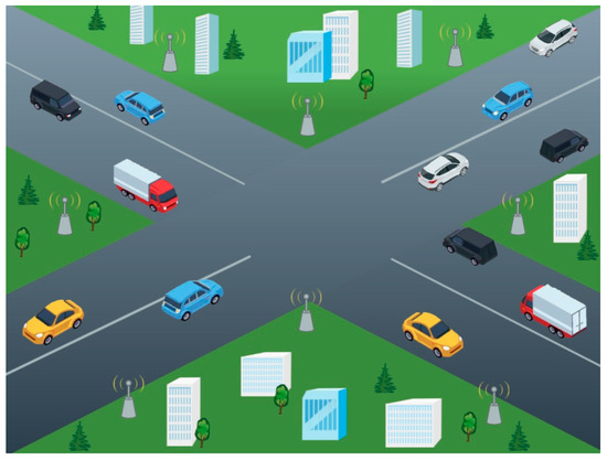 All devices must have appropriate computing resources and a system to wirelessly communicate with each other. The architecture of a VANET implemented within a settlement is shown in Figure 1.
