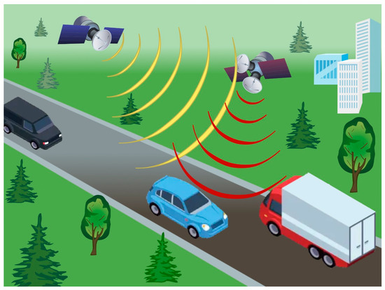 In addition, a rogue satellite can intercept the communication channel when the handoff (handover) procedure is being performed. Since the time when a low-orbit satellite is in the receiver’s line of sight is between 8 and 15 min, the handoff process must be performed from one satellite to another satellite during the handoff session to ensure uninterrupted data exchange between the OBU and the satellite RSU. A rogue satellite can intercept the communication channel and transmit unauthorized content containing false traffic information to the OBU exactly during the handoff procedure. As a result, road safety will also be compromised.