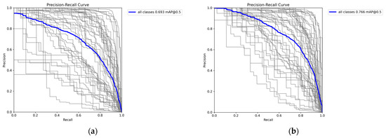 As shown in Figure 12, the area under the curve (AUC) is a key indicator of model performance, demonstrating the comprehensive efficacy across varying precision and recall configurations. The comparison highlights that the refined model exhibits a larger AUC, indicating superior detection capabilities.