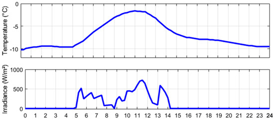 Irradiation and temperature data for the historical and tourist region in January [57].