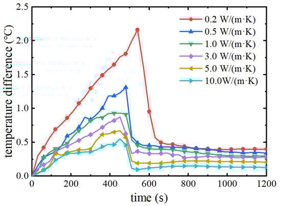 Maximum temperature difference of battery pack with different thermal conductivities.