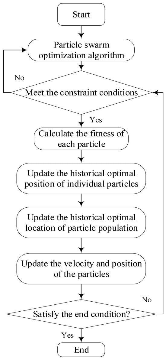 - Initialize the particle swarm, randomly generate the positions and velocities of all particles, and determine that the optimal position and the optimal position of the particles searched so far are the optimal positions searched so far in the whole particle swarm;