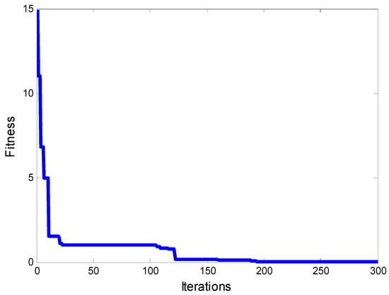 According to the above constraints, considering the convergence speed and other factors, the population size and the number of iterations are set to 100 and 300, respectively. Taking the maximum number of iterations as the program termination condition, the structure optimization calculation of the steering mechanism was carried out, and the convergence trend process is shown in Figure 4. The inertial weight factor, which directly affects the particle velocity, is an important factor in the algorithm and should be gradually reduced with the increase in the number of iterations. The inertia weight is constructed as a function of the number of iterations by using linear descending weight method. Using the MATLAB2018b software as algorithm platform, the particle swarm optimization algorithm is written, and the global optimal solution of the independent variable is obtained through the algorithm. According to the fitness curve of particles, it can be seen that the algorithm convergence speed is fast, indicating that the parameter setting in the algorithm is reasonable, as shown in Figure 4. The calculation results show that the obtained candidate solutions are abundant, evenly distributed, and stable, and the algorithm can achieve the expected results in the execution of the design and optimization tasks.