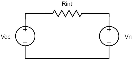 In this representation, the battery’s open-circuit voltage and internal resistance are functions of its state of charge. The open-circuit voltage is mathematically defined by [
