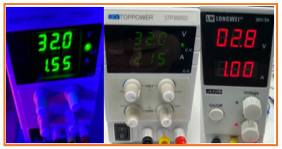 Conversely, the root mean square (RMS) voltage of the waveform across the charging on the capacitor bank is indicated in Figure 21, which is 8 V. In addition, the peak voltage was also calculated to be 11.312 V, and the average voltage was 7.2 V.