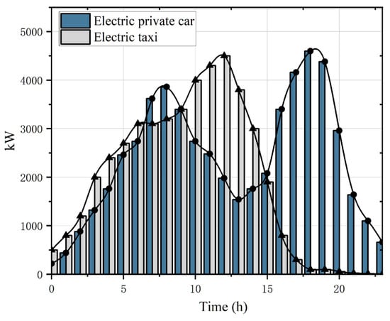 - Guo, C.; Liu, D.; Geng, W.; Zhu, C.; Wang, X.; Cao, X. Modeling and Analysis of Electric Vehicle Charging Load in Residential Area; ICPRE: Chengdu, China, 2019; pp. 394–402. [Google Scholar]