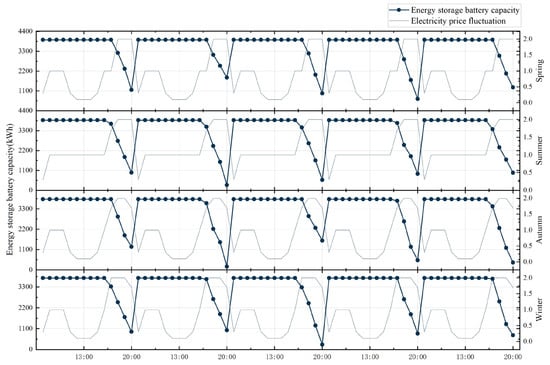- Electric bus CSs, during public vehicle operating hours, must also account for the power grid pressure during peak electricity usage times. By introducing ESBs and formulating an energy storage strategy of charging during off-peak times and discharging during peak times, the load on the power grid during peak electricity usage periods is effectively alleviated. Furthermore, a comparison of electricity costs with and without ESBs shows that CSs utilizing these facilities can significantly reduce their electricity expenses, leading to lower annual operating costs. This indicates that ESBs not only ease the load on the power grid but also offer considerable cost savings, supporting the sustainable operation of CSs.