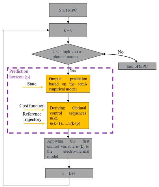 The temperature and current values in use are in accordance with the cell manufacturer’s recommendations. Regarding the initial SoC, given that during the initial 0% to 10% SoC range, the cell’s temperature is relatively stable, the MPC will focus on optimizing the high-current phase, commencing at 10% SoC. Furthermore, the initial temperature is established at 25 °C, aligning with ambient environmental conditions.