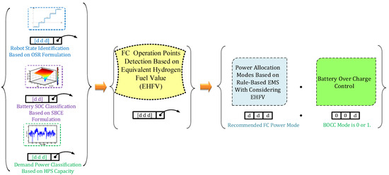 Schematic diagram of the fuel cell electric robot and proposed energy management strategy.