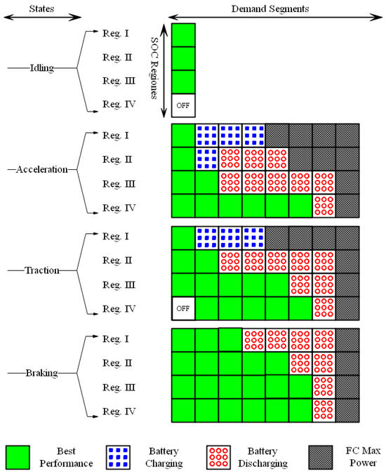 The maneuver state machine of the fuel cell electric robot under the studied online cycle.
