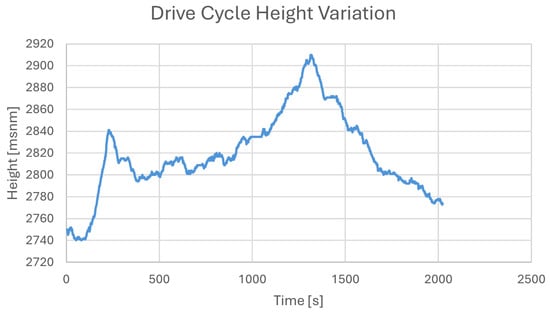 Figure 4 shows the driving cycle of the route; it presents a time series of vehicle speeds over approximately 2500 s. Here are some key observations: