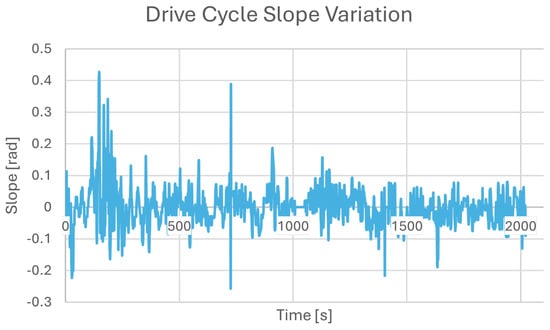 28]. Conversely, downhill sections offer opportunities for regenerative braking, which can help recuperate some energy back to the battery, although its effectiveness diminishes on steeper slopes. These dynamics are critical for understanding how electric vehicles perform under different road conditions and are essential for optimizing energy management and vehicle stability in response to terrain changes.