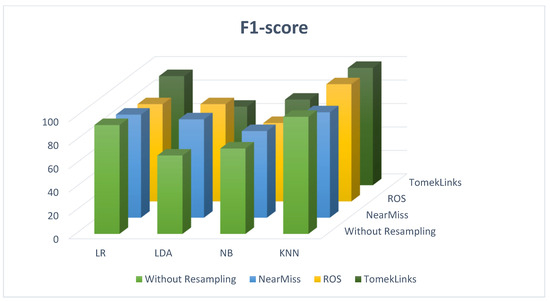 Table 11, Table 12, Table 13 and Table 14 and Figure 15, Figure 16, Figure 17 and Figure 18 present a comprehensive comparison of the examined ML models when utilizing all tested resampling techniques, with a focus on accuracy, precision, recall, and F1_Score. The results unequivocally demonstrate that the strategic application of resampling techniques in conjunction with ML models significantly enhances hacking detection efficiency, yielding high accuracy, precision, recall, and F1_Score results. Notably, both the employed ML models and resampling methods exhibit efficient performance when dealing with the car hacking dataset, which is characterized by highly imbalanced data. The use of resampling techniques is particularly crucial in addressing class imbalances, a common challenge in machine learning. By employing techniques such as NearMiss, ROS, and Tome-Links, it is possible to create a more balanced training set, which can lead to improved model performance.